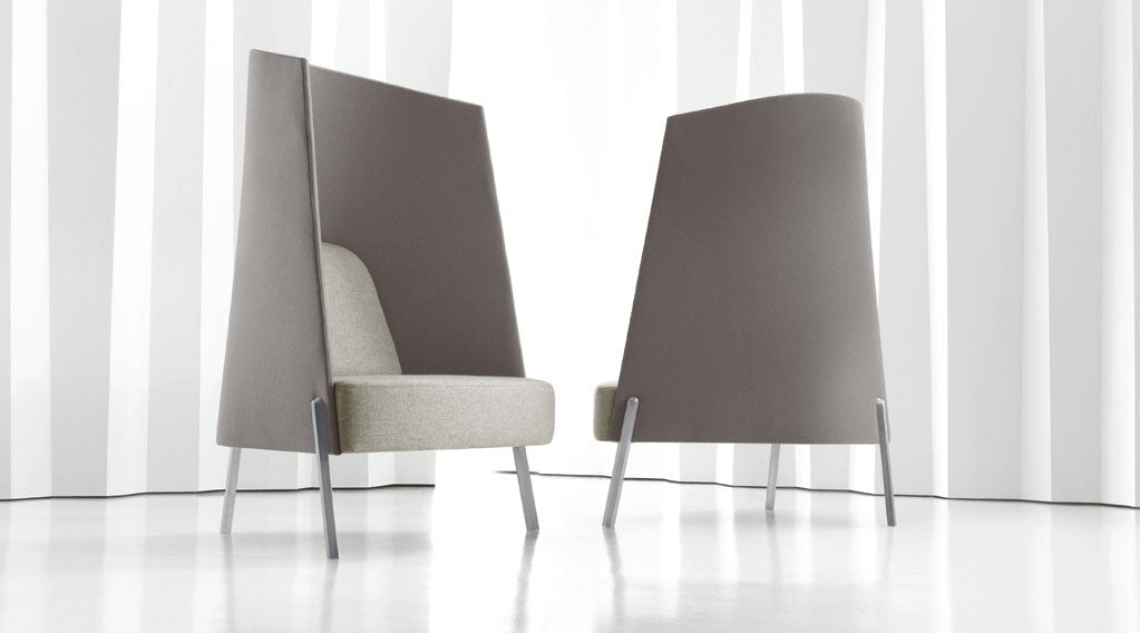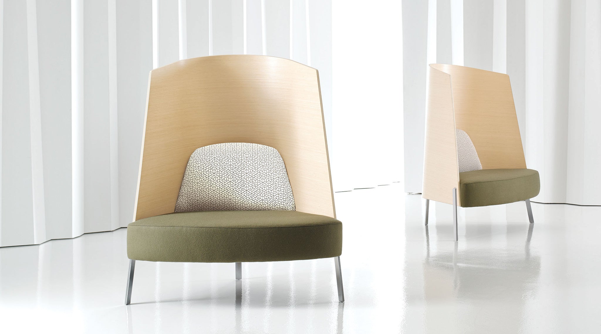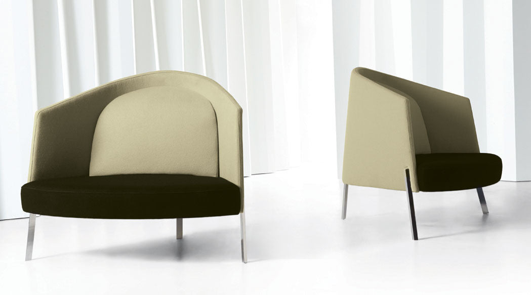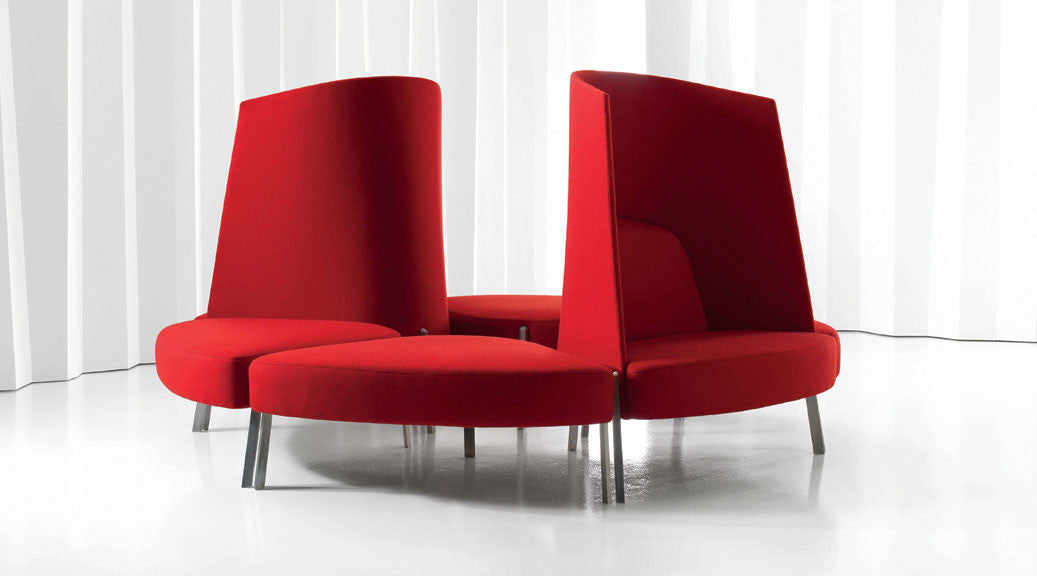 Cette collection est composée de trois meubles simples : un fauteuil de détente, un banc pouvant servir de repose-pieds, et une causeuse au dossier bas ou haut.