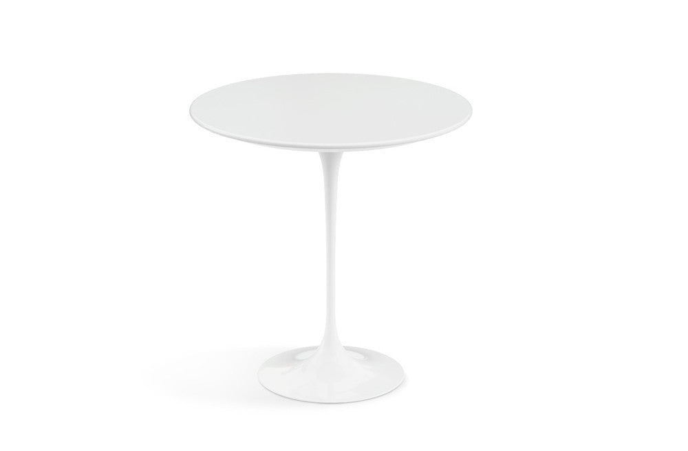 Table d'appoint disponible avec un dessus en laminé blanc et piètement blanc.